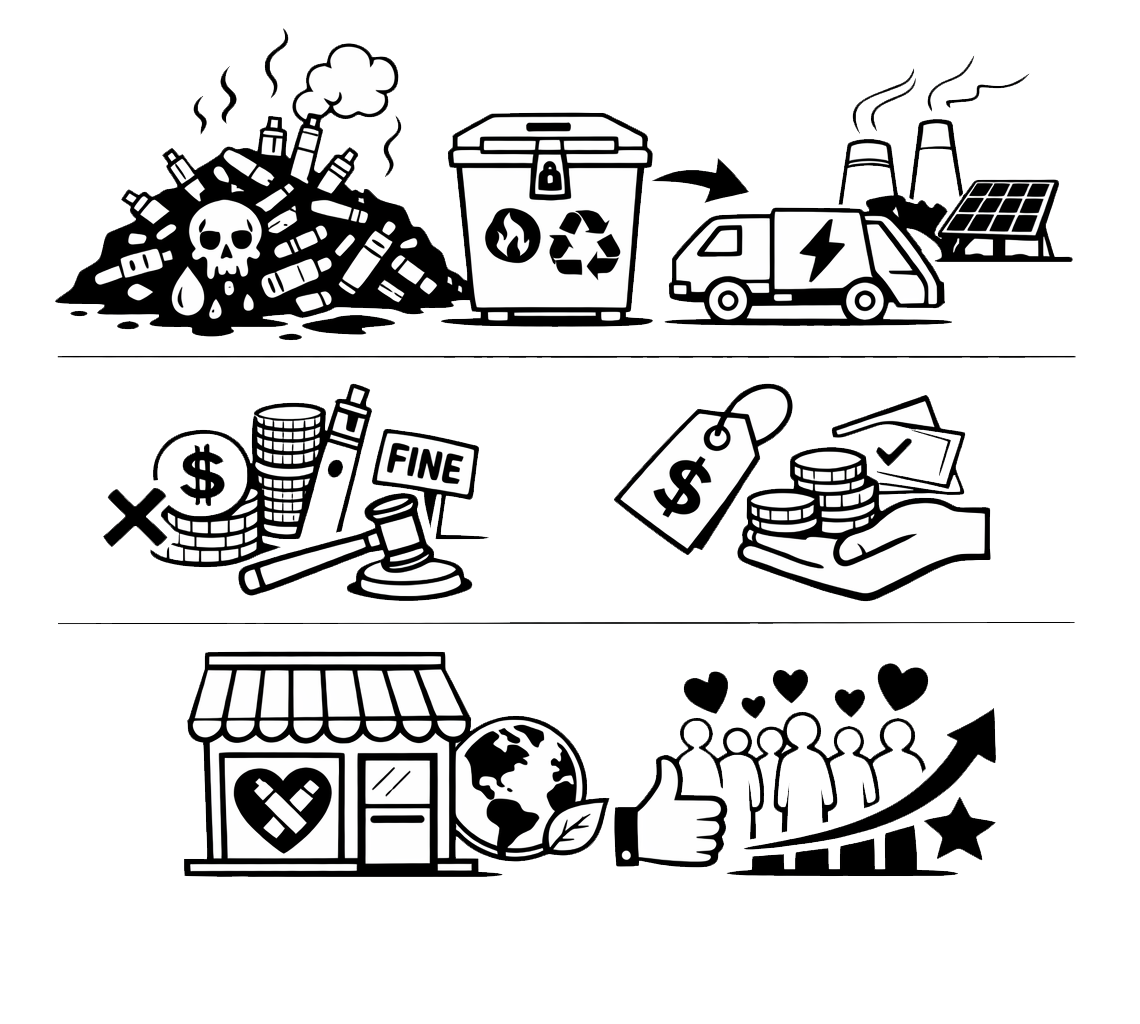 Boost Your Rep: Position your spot as an eco-hero, attracting more foot traffic, providing safe disposal for workers, and goodwill from vapers.